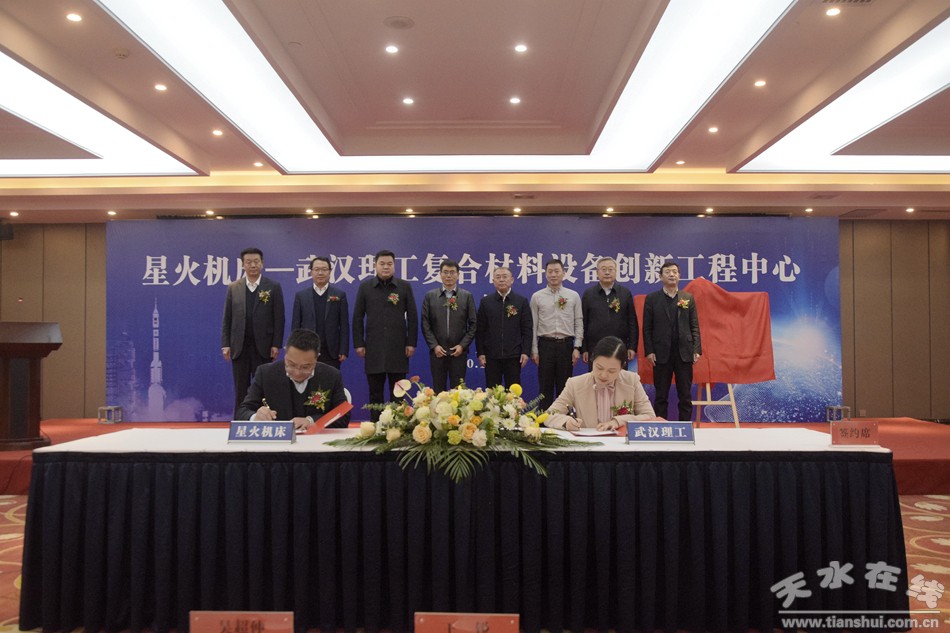 揭牌儀式上,星火機(jī)床公司和武漢理工大學(xué)簽訂了關(guān)于聯(lián)合組建成立“星火機(jī)床—武漢理工復(fù)合材料設(shè)備創(chuàng)新工程中心”協(xié)議書(shū)。