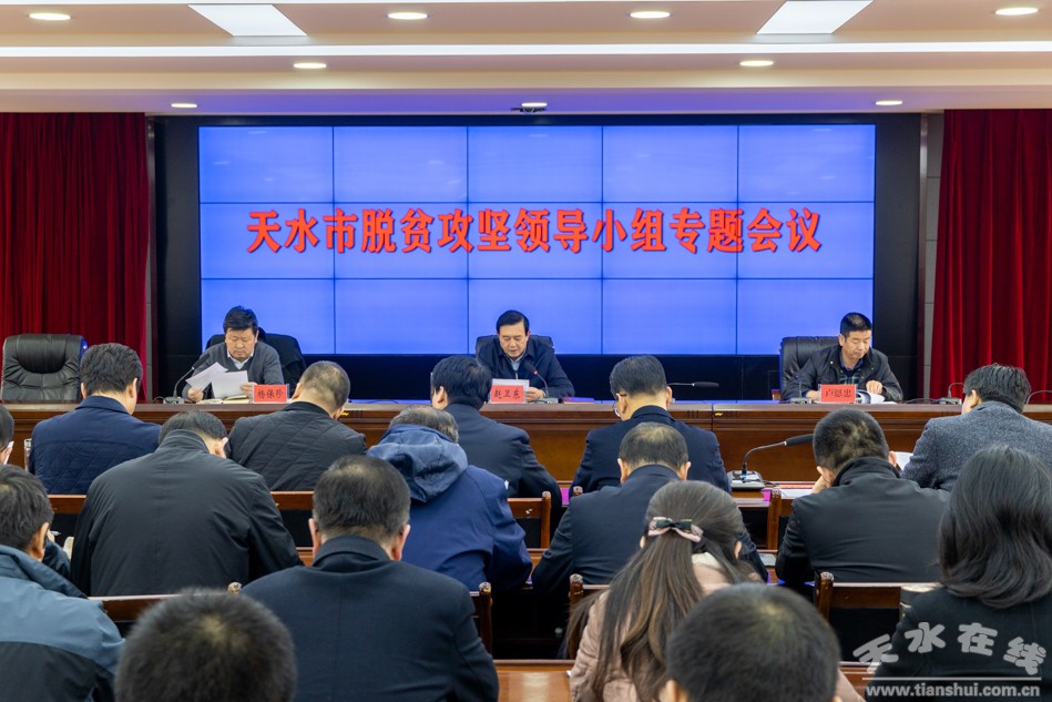 11月26日,天水市政協(xié)主席、市脫貧攻堅(jiān)領(lǐng)導(dǎo)小組常務(wù)副組長(zhǎng)趙衛(wèi)東主持召開(kāi)全市脫貧攻堅(jiān)領(lǐng)導(dǎo)小組專題會(huì)議,學(xué)習(xí)貫徹習(xí)近平總書(shū)記關(guān)于脫貧攻堅(jiān)全面收官和考核評(píng)估工作的重要指示精神,傳達(dá)學(xué)習(xí)市委書(shū)記王銳同志的有關(guān)批示精神,安排當(dāng)前高質(zhì)量打贏脫貧攻堅(jiān)工作。他強(qiáng)調(diào),各縣區(qū)各相關(guān)部門(mén)要及時(shí)調(diào)整工作狀態(tài),跟進(jìn)工作進(jìn)度,壓實(shí)工作責(zé)任,明確工作重點(diǎn),確保脫貧攻堅(jiān)在當(dāng)前收官階段集結(jié)最強(qiáng)兵力、保持最大干勁、發(fā)揚(yáng)最硬作風(fēng),高質(zhì)量打好打贏“最后一戰(zhàn)”,奮力奪取脫貧攻堅(jiān)工作的全面勝利。