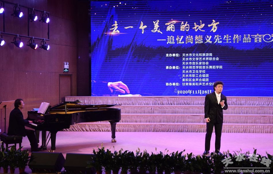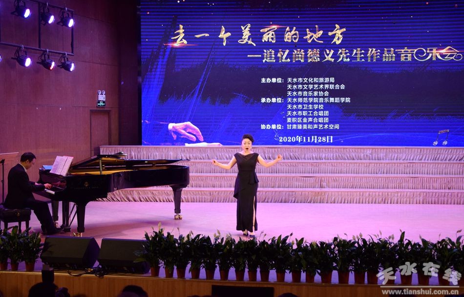 一個(gè)人走了,去了一個(gè)美麗的地方;卻將無盡的思念留給了人們。一個(gè)人走了,去了一個(gè)遙遠(yuǎn)的地方,卻將許多優(yōu)美樂曲撒落人間,人們詠嘆著,歌唱著他所創(chuàng)作的美麗音符,感受著他那超越時(shí)空的偉大靈魂。 11月28日,由天水市合唱協(xié)會理事長、天水市音樂家協(xié)會副主席、天水市職工合唱團(tuán)團(tuán)長、指揮呂曉莉女士擔(dān)任總導(dǎo)演,天水市文化和旅游局、天水市文學(xué)藝術(shù)界聯(lián)合會、天水市音樂家協(xié)會主辦的“去一個(gè)美麗的地方一一追憶尚德義先生作品音樂會”在天水師院隆重舉行。天水音樂界以演唱作品音樂會的形式,追憶和懷念中國最杰出的藝術(shù)歌曲和合唱曲作曲大師、音樂教育家尚德義先生。