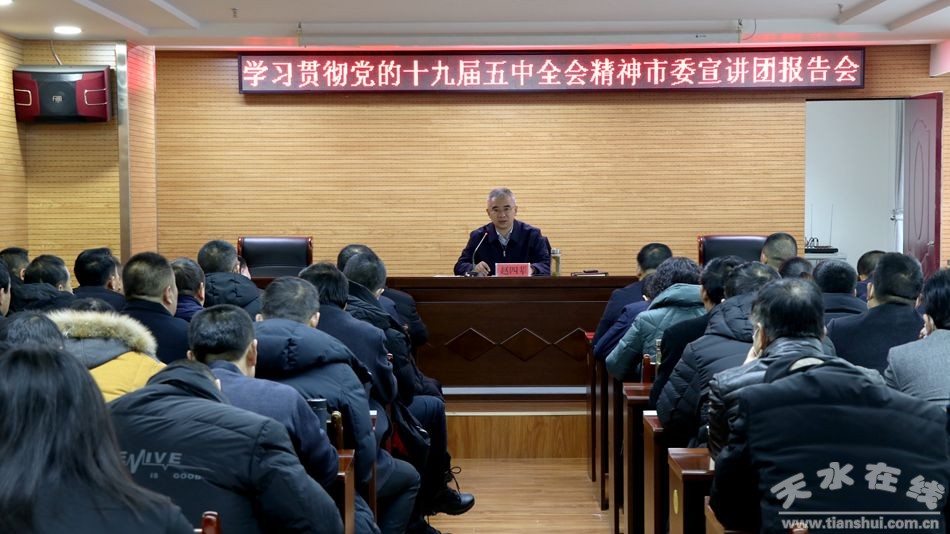 12月15日,按照天水市委關(guān)于黨的十九屆五中全會(huì)精神宣講工作安排,市委常委、常務(wù)副市長趙四輩給分管的市發(fā)展改革委、市交通運(yùn)輸局、市應(yīng)急管理局班子成員和科級(jí)以上干部宣講黨的十九屆五中全會(huì)精神。