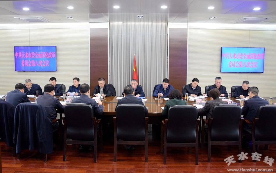 12月22日下午,天水市委全面深化改革委員會召開第八次會議。市委書記、市委全面深化改革委員會主任王銳主持會議并講話。他強(qiáng)調(diào),要深入貫徹落實黨的十九屆五中全會精神,堅持目標(biāo)導(dǎo)向、結(jié)果導(dǎo)向,總結(jié)宣傳改革成就經(jīng)驗,精準(zhǔn)謀劃明年改革工作任務(wù),確!笆奈濉遍_好局、起好步。
