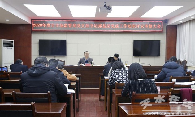 按照市委直屬機關(guān)工委統(tǒng)一部署,1月21日,天水市市場監(jiān)管局組織召開了2020年度黨支部書記抓基層黨建工作述職評議考核大會。市局黨組成員、副局長、機關(guān)黨委書記賈文斌參加會議并講話。市局直屬機關(guān)黨委委員、執(zhí)法隊機關(guān)黨委委員及各支部書記參加會議。