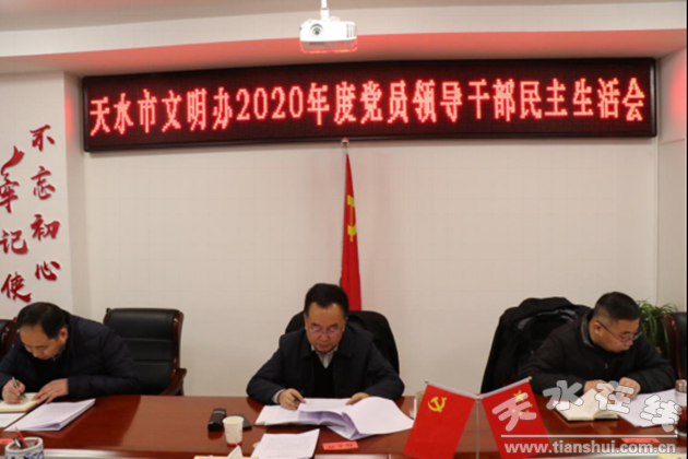 按照《中共天水市紀委機關(guān)中共天水市委組織部關(guān)于認真開好2020年度縣以上黨和國家機關(guān)黨員領(lǐng)導干部民主生活會的通知》要求,經(jīng)市紀委機關(guān)、市委組織部同意,1月22日上午,市文明辦召開了2020年度黨員領(lǐng)導干部民主生活會。