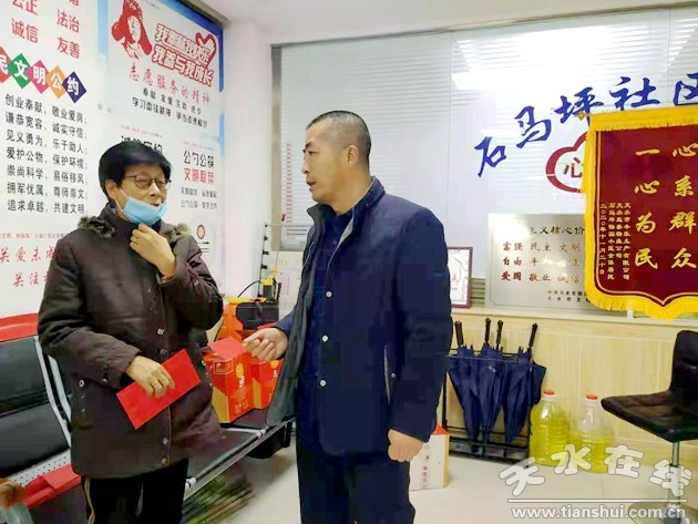 2月1日,天水市退役軍人事務局黨組成員、副局長程全瑞代表局黨組,看望慰問石馬坪社區(qū)和五里鋪社區(qū)因公犧牲軍人家屬和困難群眾,送去慰問品和慰問金,向他們致以誠摯問候和新春祝福。