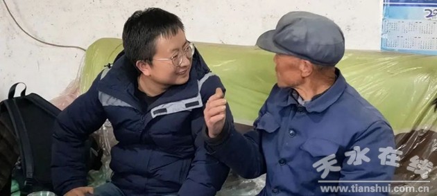 △天水在線2017年2月3日在大坪村采訪人民日報記者王錦濤(右)