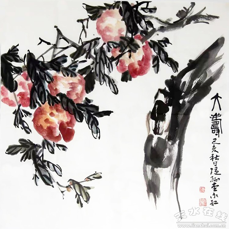 靳永紅 《大壽》 中國(guó)畫(huà) 50×50厘米