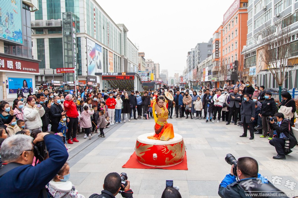 (“麥積飛天”在麥積區(qū)商埠路步行街演出掠影)
