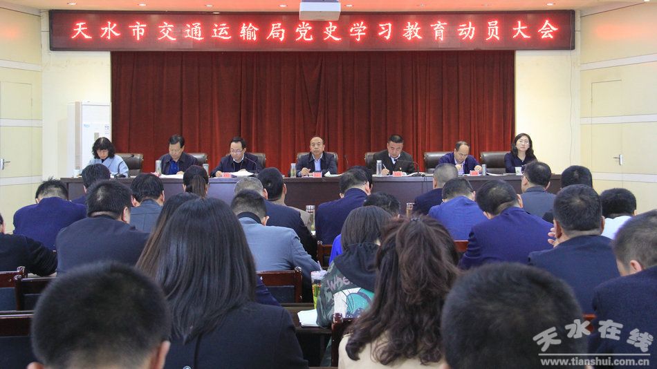 3月24日下午,天水市交通運(yùn)輸局召開黨史學(xué)習(xí)教育動(dòng)員大會(huì)。會(huì)議深入學(xué)習(xí)貫徹習(xí)近平總書記在黨史學(xué)習(xí)教育動(dòng)員會(huì)上的重要講話精神,傳達(dá)學(xué)習(xí)省委、市委黨史學(xué)習(xí)教育相關(guān)會(huì)議精神,安排部署局系統(tǒng)黨史學(xué)習(xí)教育工作。局機(jī)關(guān)全體干部職工和局屬各相關(guān)單位科級(jí)以上干部參加了動(dòng)員大會(huì)。