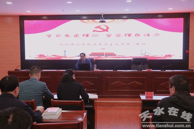 機關(guān)黨委書記張秀麗同志帶領(lǐng)全體黨員重溫了入黨誓詞,進行了莊嚴宣誓。天水師范學院馬克思主義學院侯智教授為大家作了題為《學習黨史理論、堅定理想信念》的黨史學習教育專題宣講輔導,從“進行偉大斗爭、推進偉大事業(yè)、實現(xiàn)偉大夢想、經(jīng)驗和啟示”四個方面深刻闡釋了黨的百年光輝歷程,使黨員干部更加深刻地認識到中國從站起來、富起來到強起來的艱辛探索和歷史必然,從而進一步堅定了“四個自信”,做到知史愛黨、知史愛國。市教育局機關(guān)第一黨支部書記趙旺龍和天水師范學院徐富平副教授通過“黨的故事我來講”活動,分別為大家深入淺出地講述了《紅軍長征在天水》和《長征組歌》兩個紅色故事,闡述了紅軍堅韌不拔、自強不息、勇往直前的偉大精神,鼓舞了全體黨員從中汲取力量和智慧,走好新時代的長征路,奮進教育現(xiàn)代化新征程。