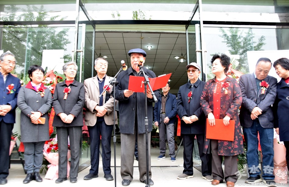 (市政協黨組原書記、原副主席,天水老年大學名譽校長張子芳宣布畫展開幕。)