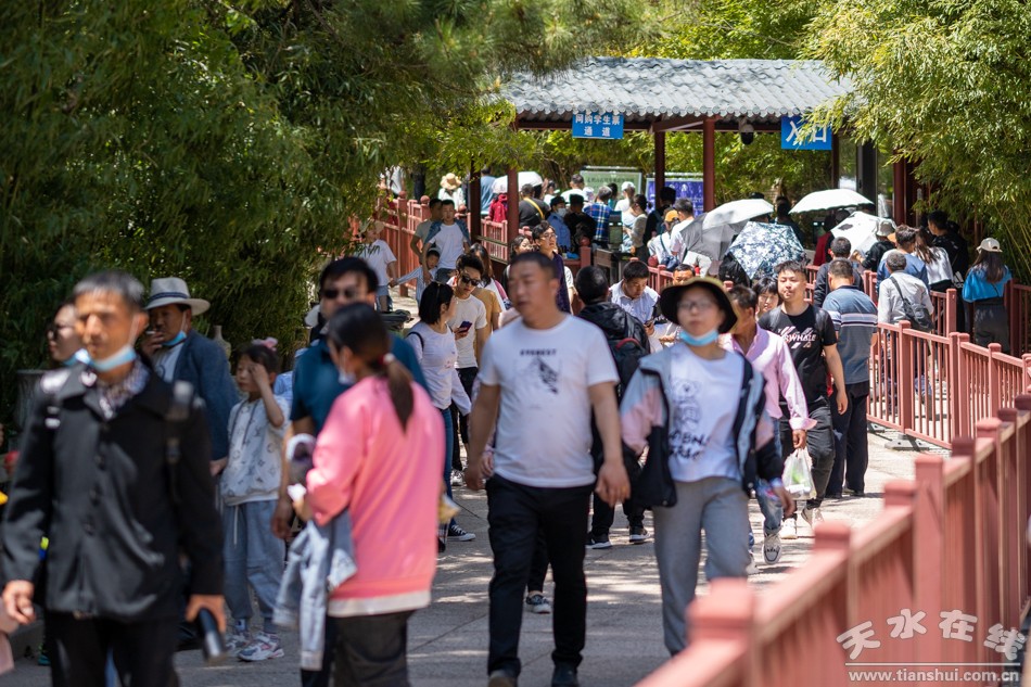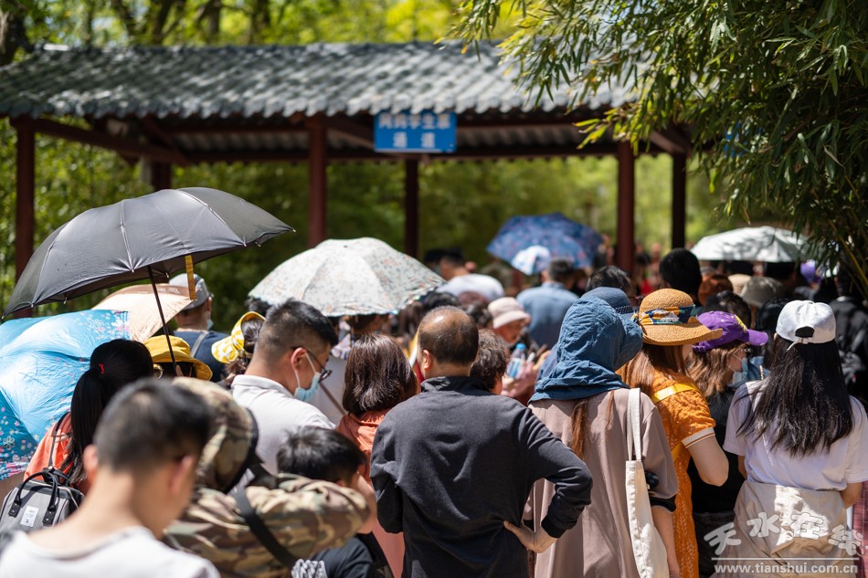 (五一假期首日,麥積山人流如織。攝影:天水在線)