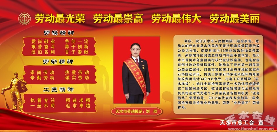 劉欣,現(xiàn)任天水市人民檢察院二級(jí)檢察官。她承辦的我市某縣水務(wù)局怠于履行河道監(jiān)管職責(zé)行政公益訴訟案,促使縣域內(nèi)16家非法采砂場關(guān)停取締,采砂破壞的河道及耕地均得到平整恢復(fù),是天水市首例水務(wù)監(jiān)督類行政公益訴訟案件,也是全國首例行政公益訴訟案件,她承辦了我市第一起民事公益訴訟案件,對(duì)我市某區(qū)破壞生態(tài)環(huán)境的三家采石場提起訴訟,促使三家采石場依法承擔(dān)環(huán)境修復(fù)整改費(fèi)用共計(jì)349.9萬余元,打造了公益訴訟“天水樣板”。她以全省檢察系統(tǒng)第一名的優(yōu)異成績通過了國家司法考試,被甘肅省檢察院評(píng)為全省檢察機(jī)關(guān)司法考試先進(jìn)個(gè)人并榮獲全省檢察機(jī)關(guān)“業(yè)務(wù)標(biāo)兵”榮譽(yù)稱號(hào),2016年代表我省參加第二屆全國檢察機(jī)關(guān)檢察業(yè)務(wù)競賽,榮獲“業(yè)務(wù)能手”榮譽(yù)稱號(hào)。