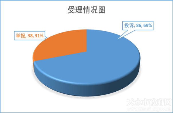 2021年“五一”期間(5月1日--5月5日),天水市市場(chǎng)監(jiān)督管理局通過“全國12315平臺(tái)”“天水市12345政務(wù)服務(wù)平臺(tái)”和本級(jí)來訪來電受理消費(fèi)者反映問題124件,其中投訴86件、舉報(bào)38件。