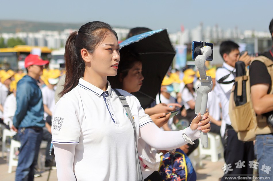 (天水在線主播萌萌通過新華社現場云、天水在線視頻號和天水在線抖音號進行現場直播。)