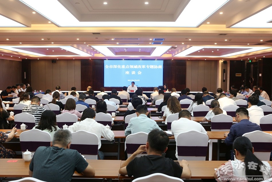 按照《中共天水市委2021年政黨協(xié)商計劃》,6月25日,市委召開深化重點領(lǐng)域改革專題協(xié)商座談會,聽取市級各民主黨派意見建議,集思廣益、凝聚共識,推動全市全面深化改革向縱深發(fā)展。市委副書記楊小平出席會議并講話,市委常委、市委統(tǒng)戰(zhàn)部部長王燕主持會議,市人大一級巡視員、市民盟主委安志宏,市政協(xié)副主席、市民進(jìn)主委屈光平出席會議。市級各民主黨派班子成員、參政議政骨干,市工商聯(lián)負(fù)責(zé)人,無黨派人士代表,市深改領(lǐng)導(dǎo)小組成員單位和有關(guān)部門負(fù)責(zé)同志參加會議。