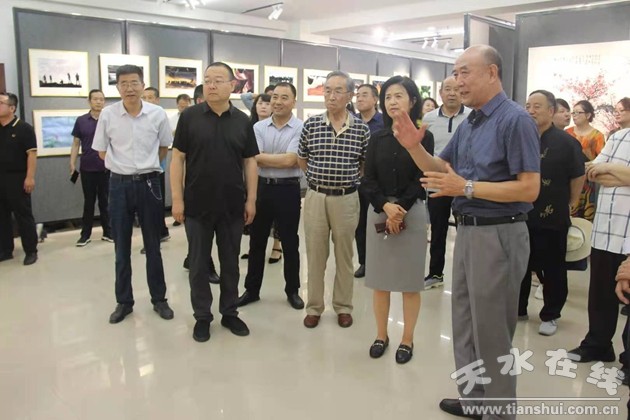 市老干部張子芳、杜明富、王欽錫、王子生、宋博華,市委黨史學(xué)習(xí)教育第十巡回指導(dǎo)組領(lǐng)導(dǎo)開(kāi)展前觀看了本次書(shū)畫(huà)展。(馬娟)