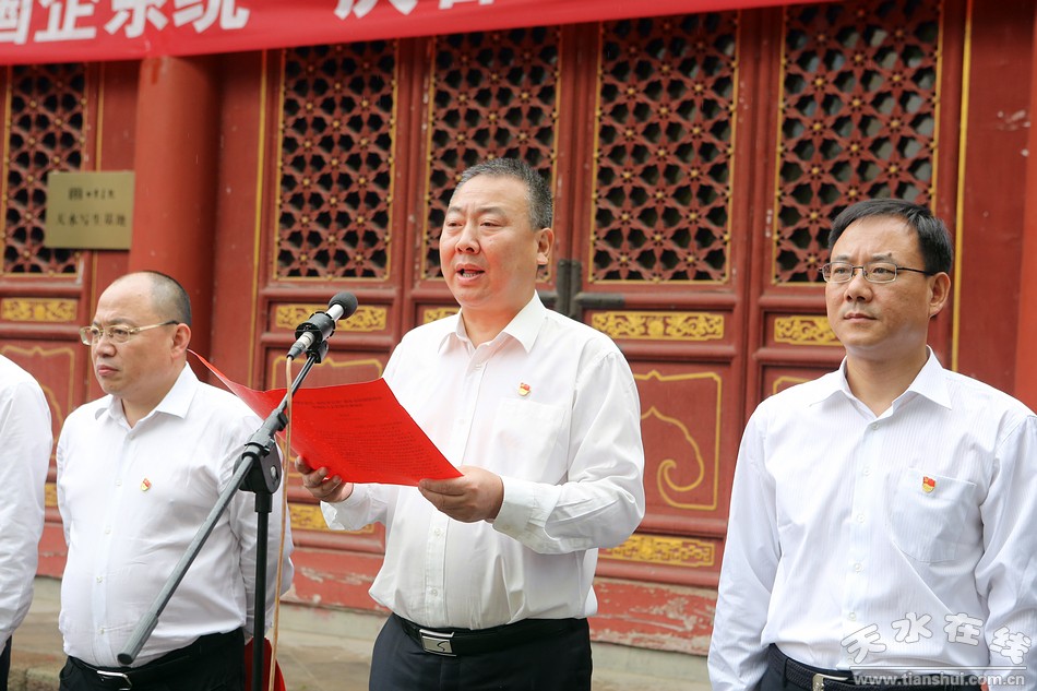 副市長張棟梁宣布全市國資國企系統(tǒng)“慶百年華誕·抒愛黨情懷”書畫展開展;市政府國資委黨委書記、主任、市企業(yè)工委書記何曉斌致辭。