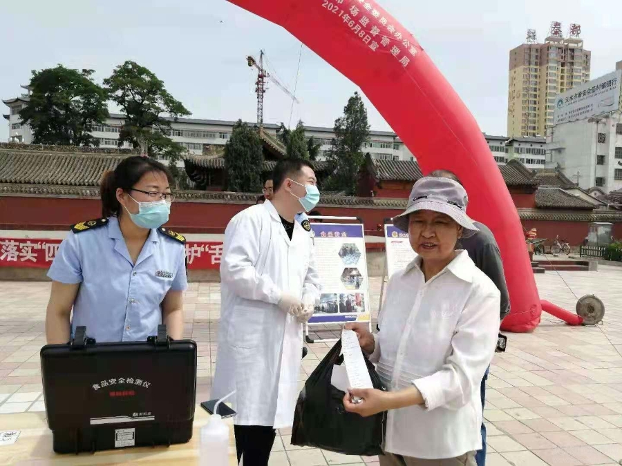 黨史學(xué)習(xí)教育開展以來,天水市市場監(jiān)管系統(tǒng)不斷拓展“我為群眾辦實(shí)事”活動(dòng)載體,面向市民常態(tài)化開展了“你送我檢”“你點(diǎn)我檢”免費(fèi)檢定活動(dòng)。截至目前,全系統(tǒng)共開展“你點(diǎn)我檢”“你送我檢”免費(fèi)檢定256場次,檢測食品3528批次,檢測結(jié)果及時(shí)向社會(huì)進(jìn)行了公示。