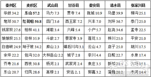 【摘要】8月21日下午至夜間全市出現(xiàn)區(qū)域性降水天氣,渭北三縣小雨,其余縣區(qū)中到大雨,麥積區(qū)馬跑泉鎮(zhèn)出現(xiàn)暴雨,最大降水量出現(xiàn)在麥積區(qū)馬跑泉鎮(zhèn)東山,達(dá)57.2毫米。