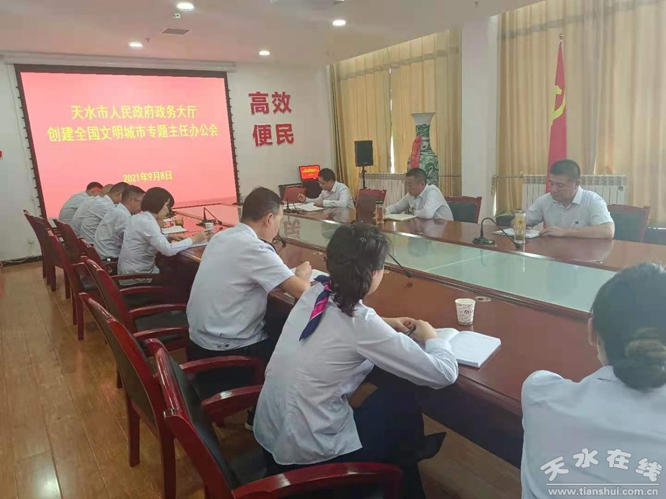 為認(rèn)真落實(shí)市委、市政府關(guān)于創(chuàng)建全國文明城市的安排部署,進(jìn)一步提高黨員干部思想認(rèn)識,明確創(chuàng)城工作責(zé)任,不斷強(qiáng)化細(xì)化實(shí)化工作舉措,9月8日,天水市政府政務(wù)大廳召開主任辦公會專題研究部署創(chuàng)建全國文明城市工作。大廳班子成員,各科室、各支部、幫辦代辦服務(wù)隊(duì)負(fù)責(zé)人參加會議。