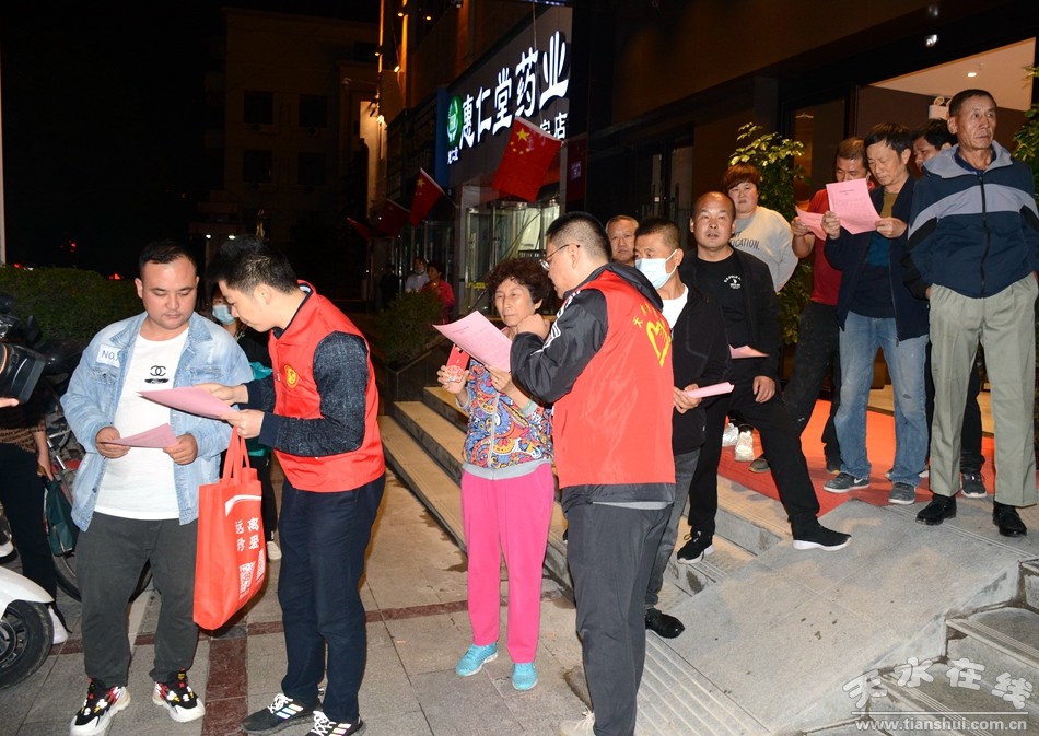 (市委政法委干部馬瑋宣讀天水市委政法委致大眾南路沿街各單位、小區(qū)、商鋪的“文明城市創(chuàng)建倡議書(shū)”)