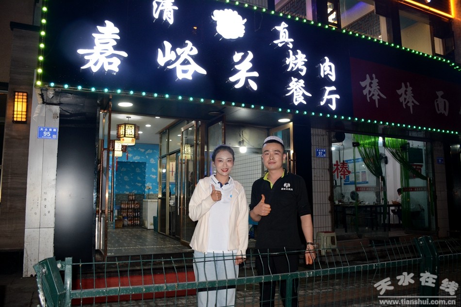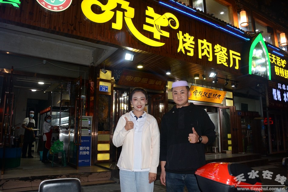 (尕羊烤肉餐廳負(fù)責(zé)人與天水在線主播萌萌合影留念)