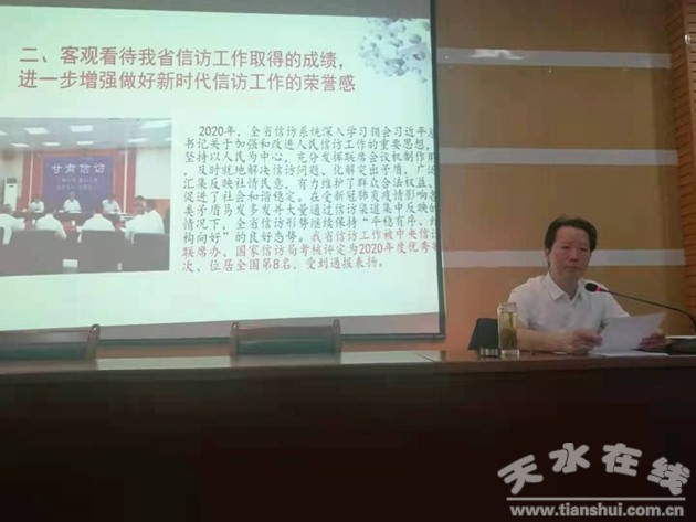 9月15至17日,天水市信訪干部社會(huì)建設(shè)能力提升培訓(xùn)班在天水農(nóng)校舉辦。省委副秘書長、省信訪局局長秦仰賢同志應(yīng)邀出席并作專題輔導(dǎo)。在開班儀式上,市委副秘書長、市信訪局局長李子揚(yáng)主持并作動(dòng)員講話,清水縣委常委、政法委書記王懷珍代表縣委、縣政府致辭,天水農(nóng)校黨委書記文建水出席。70名來自市直信訪聯(lián)席會(huì)議成員單位業(yè)務(wù)骨干,各縣區(qū)信訪局、部分鄉(xiāng)鎮(zhèn)(街道)負(fù)責(zé)人及信訪干部參加了培訓(xùn)。