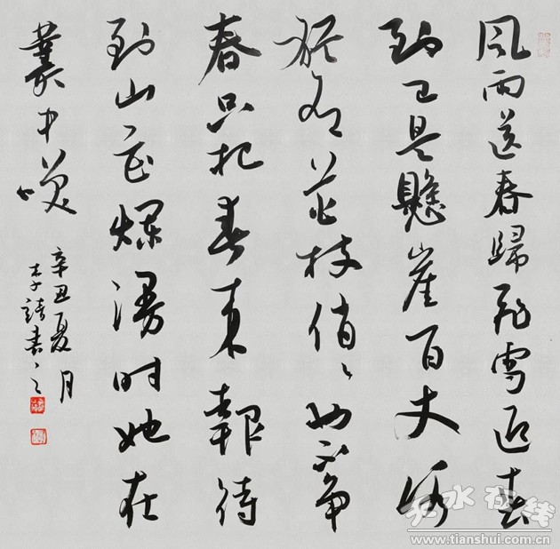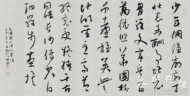 天水書(shū)畫(huà)院始終倡導(dǎo)藝術(shù)家要把時(shí)代生活作為主要表現(xiàn)對(duì)象,堅(jiān)持以人民為中心的創(chuàng)作導(dǎo)向,鼓勵(lì)藝術(shù)家們?cè)诤霌P(yáng)藝術(shù)大道的同時(shí),堅(jiān)定文化自信,深入生活,表達(dá)現(xiàn)實(shí)主題,用藝術(shù)作品回望歷史、抒發(fā)理想,展現(xiàn)新時(shí)代的新發(fā)展、新面貌,用真正健康向上的藝術(shù)作品陶冶情操、啟迪心智、引領(lǐng)風(fēng)尚。在慶祝祖國(guó)72周年之際,為了進(jìn)一步激發(fā)大家的創(chuàng)作熱情,體現(xiàn)藝術(shù)家的文化擔(dān)當(dāng)、文化自信與文化自覺(jué),通過(guò)網(wǎng)絡(luò)平臺(tái)每周推出一期天水書(shū)畫(huà)院在職書(shū)畫(huà)家作品,謳歌時(shí)代精神,禮贊祖國(guó)華誕。