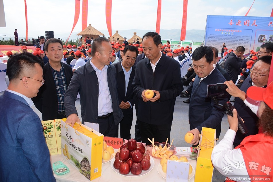 開幕式結(jié)束后,領(lǐng)導(dǎo)和嘉賓一同參觀了麥積區(qū)名優(yōu)農(nóng)特產(chǎn)品集中展覽展示,品嘗質(zhì)優(yōu)味美的花牛蘋果。區(qū)直相關(guān)部門、單位,各鎮(zhèn)、道北辦負(fù)責(zé)同志,部分龍頭企業(yè)、合作社負(fù)責(zé)人,群眾代表,農(nóng)口部門干部職工代表,區(qū)內(nèi)“三品一標(biāo)”認(rèn)證企業(yè)、種養(yǎng)能手及外地果品營(yíng)銷企業(yè)代表,相關(guān)駐區(qū)金融機(jī)構(gòu)代表,省、市、區(qū)媒體記者參加活動(dòng)。(麥積區(qū)融媒體中心記者 李云強(qiáng) 攝影:天水在線)