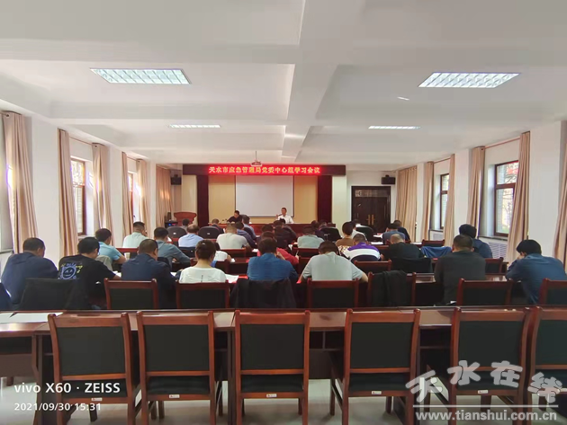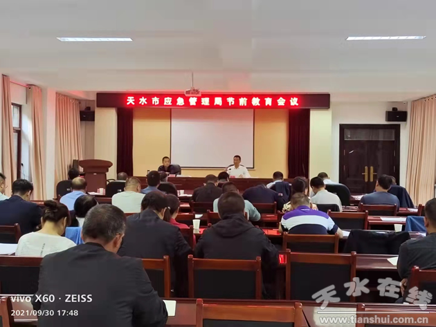 9月30日,天水市應(yīng)急管理局召開黨委中心組學(xué)習(xí)(擴(kuò)大)會議,局黨委書記陶勇主持會議并講話,在家局班子成員參加會議,各調(diào)研員和干部職工列席會議。