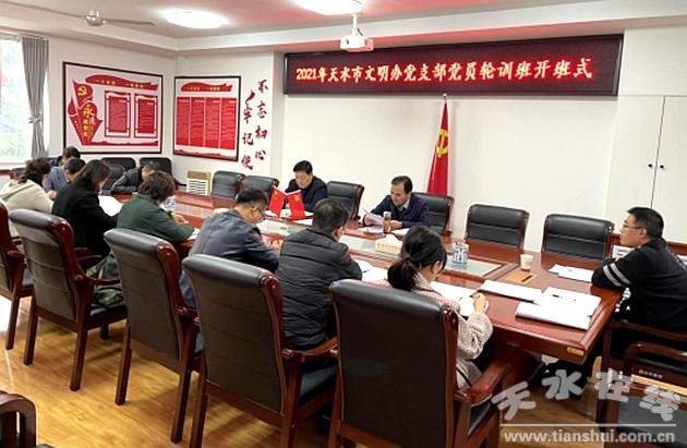 10月13日上午,天水市文明辦黨支部舉行了2021年黨員輪訓班開班式,在家領(lǐng)導班子成員和全體黨員共14人參加。