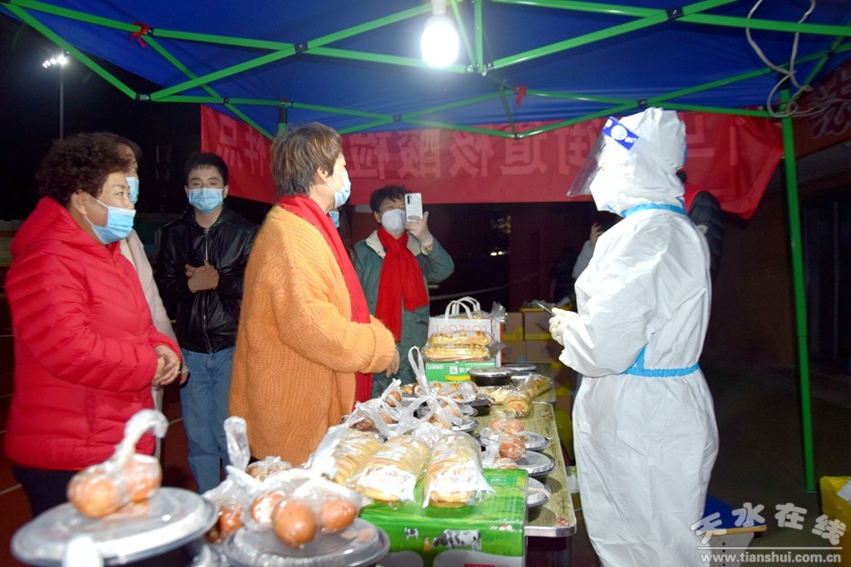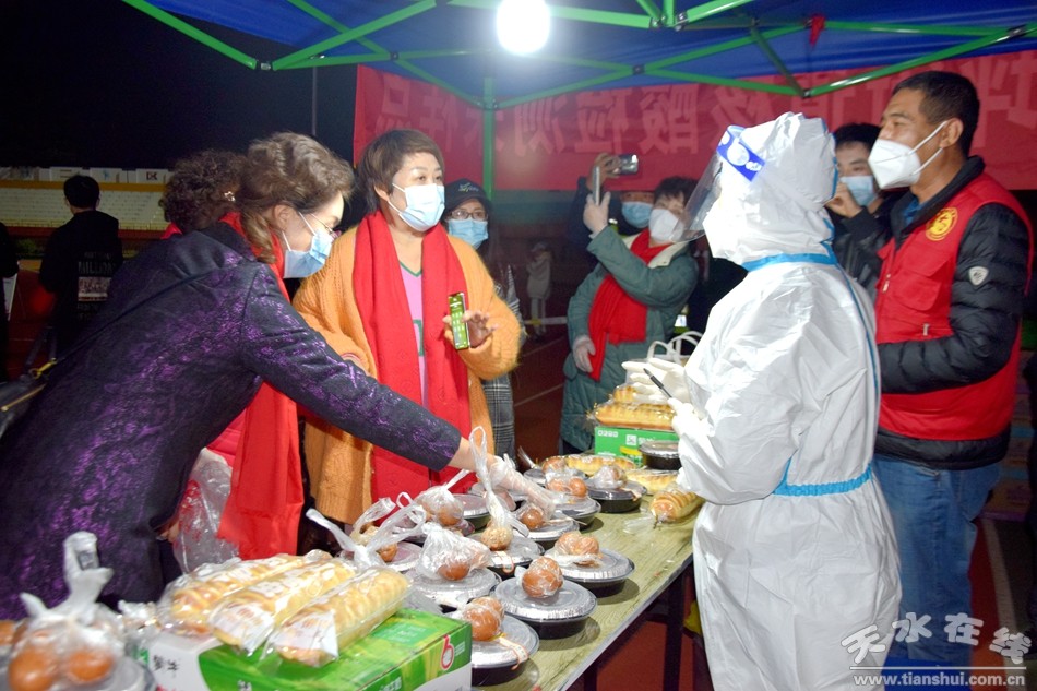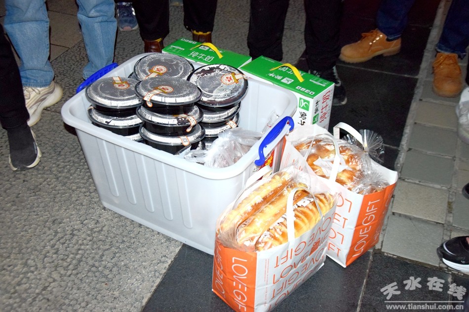 目前,我市疫情防控形勢十分嚴(yán)峻,為抗擊疫情,秦州區(qū)和麥積區(qū)開始進(jìn)行大規(guī)模核酸檢測。為助力防疫一線,10月24晚,我市“公益在行動,愛心在路上”公益團(tuán)隊組織愛心人士,積極籌措食物,對秦州區(qū)龍城廣場、天慶嘉園、南山體育場、天水西出入口、伏羲中學(xué)5個核酸檢測工作點送去夜宵180份,包括牛奶、面包、方便面、茶葉蛋、八寶粥、火腿腸等4千多元的食品,其中八寶粥和茶葉蛋由王婭萍女士帶領(lǐng)員工親自制作,為一線醫(yī)護(hù)人員和志愿者送去了溫暖。