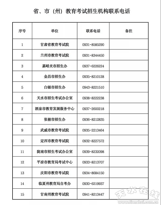 天水市招生考試辦公室