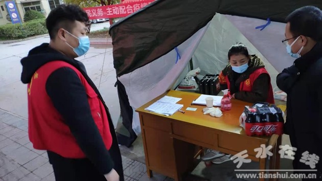 在前期助力核酸檢測工作之后,10月26日,根據(jù)任務(wù)安排,市人防辦黨員志愿者在金家莊小區(qū)開展疫情防控志愿先鋒服務(wù)活動(dòng),搭建值班帳篷,設(shè)置防控標(biāo)識(shí),晝夜值班值守,落實(shí)管制措施。10月27日上午,接到疫情防控點(diǎn)調(diào)整到春風(fēng)小區(qū)的通知后,值班人員立即行動(dòng),迅速開展交接和轉(zhuǎn)移工作,重新開設(shè)值班點(diǎn),搭建值班帳篷,立即投入工作,晝夜輪班值守,對(duì)出入小區(qū)人員進(jìn)行“四碼”查驗(yàn)、體溫檢測、登記造冊(cè),配合物業(yè)管理人員加強(qiáng)宣傳,填寫發(fā)放出入卡,勸導(dǎo)進(jìn)出人員正確佩戴口罩、做好安全防護(hù)措施、嚴(yán)格遵守相關(guān)規(guī)定。當(dāng)日,辦領(lǐng)導(dǎo)到現(xiàn)場督導(dǎo)檢查工作開展情況并提出要求。