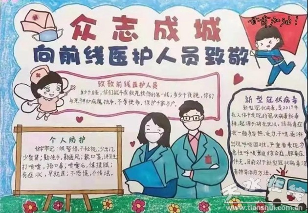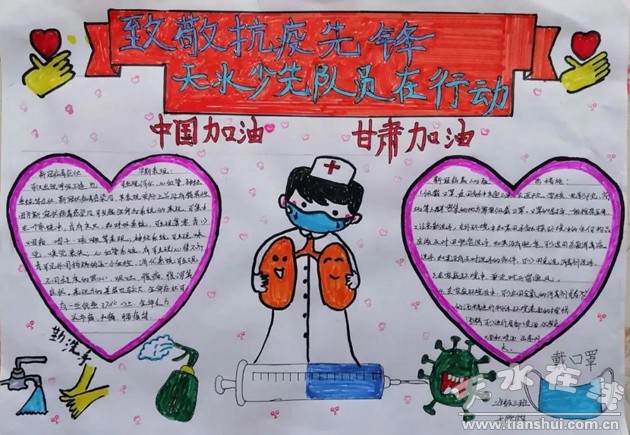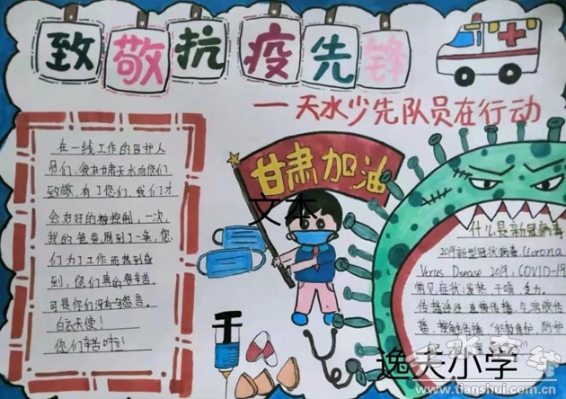 少先隊員們通過多種途徑了解疫情防控知識,一幅幅生動的繪畫、手抄報,表達了對一線抗疫人員的致敬,傳遞抗疫正能量。讓我們堅定信念,萬眾一心,攜手并肩,眾志成城,共同戰(zhàn)勝疫情!