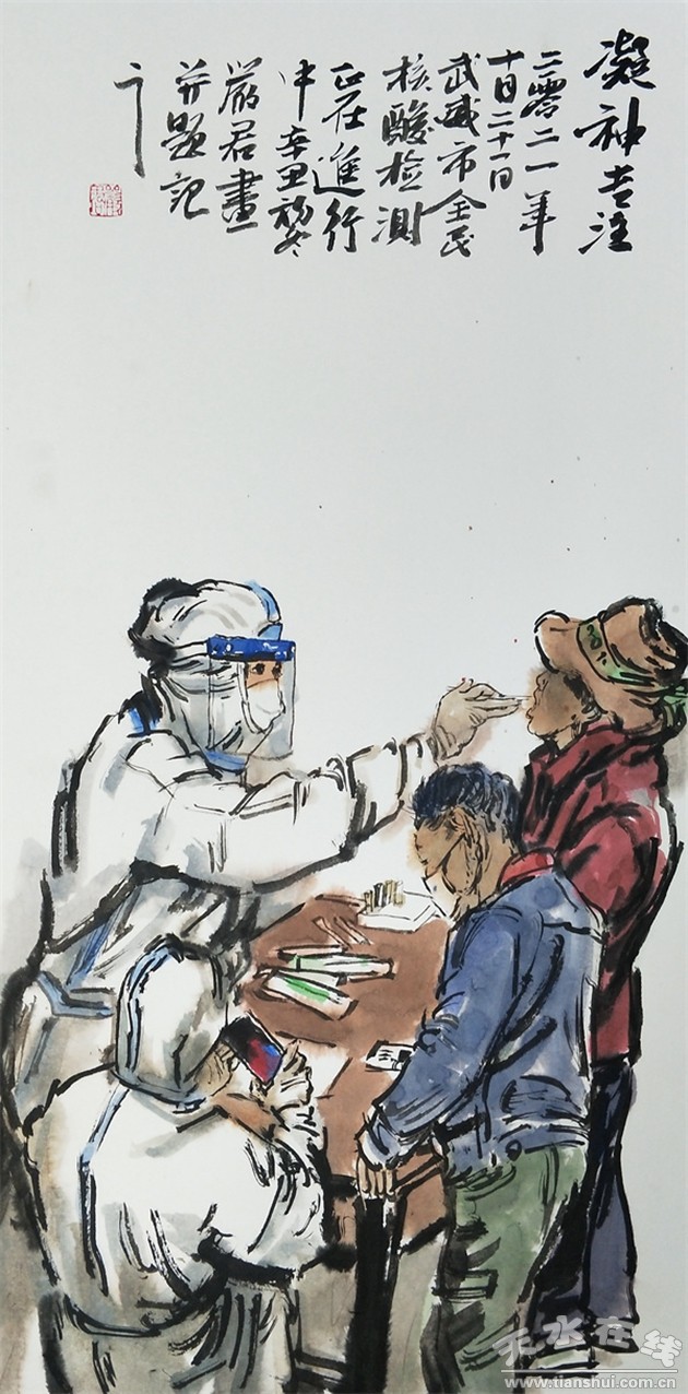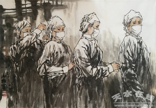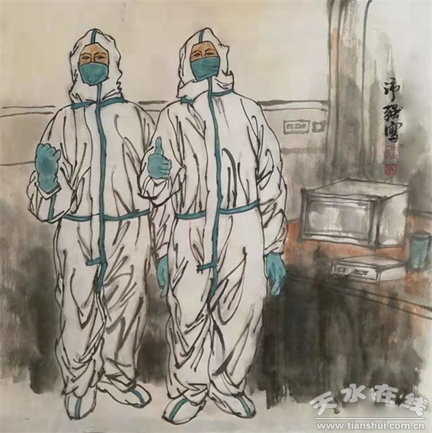 自我省疫情發(fā)生以來,甘肅省畫院美術(shù)館聯(lián)盟充分發(fā)揮藝術(shù)戰(zhàn)線舉旗幟、聚民心,弘揚(yáng)主旋律、彰顯正能量的作用,弘揚(yáng)了“風(fēng)雨共舟、守望相助”的真情大愛,以書畫傳情,以筆墨戰(zhàn)疫,向勇士們致敬,表達(dá)著全省人民守護(hù)家園、堅(jiān)決打贏隴原疫情阻擊戰(zhàn)的堅(jiān)強(qiáng)決心。此次展出的作品薈萃了甘肅畫院和甘肅省畫院美術(shù)館聯(lián)盟理事在近期以抗疫為主題創(chuàng)作的精品力作,表達(dá)了全省畫院系統(tǒng)書畫家們用畫筆向奮戰(zhàn)在抗疫一線的醫(yī)護(hù)人員和志愿者的敬意、鼓舞士氣、弘揚(yáng)正氣,把藝術(shù)家的關(guān)懷與溫暖傳遞到疫情防控最前沿,為天水加油,為甘肅加油!