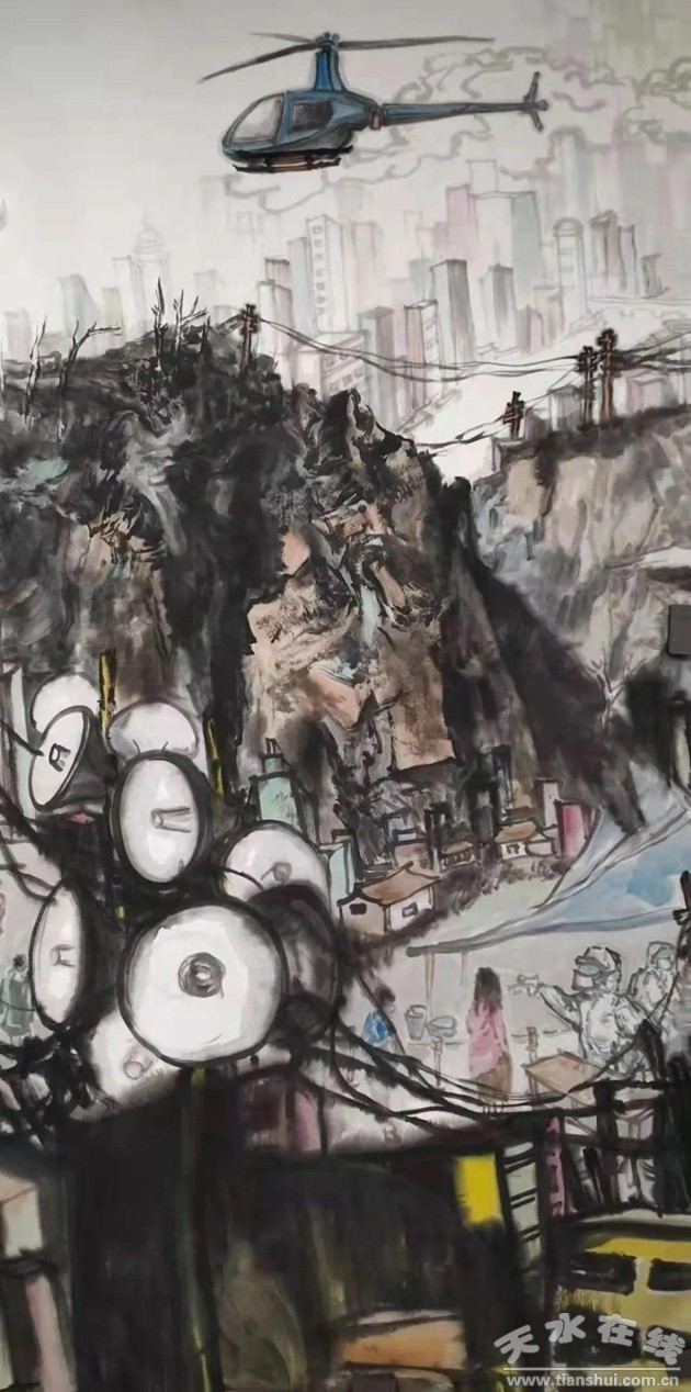 天水市美術家協(xié)會副主席、天水市青年美術家協(xié)會主席趙暉先生用手中的筆墨助力疫情防控的宣傳,創(chuàng)作出凝聚人心的正能量美術作品,為疫情防控鼓呼加油,為堅決打贏這場沒有硝煙的戰(zhàn)爭貢獻自身力量!