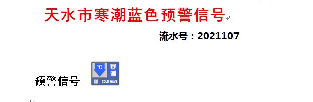 天水市氣象臺2021年11月20日11時07分發(fā)布寒潮藍(lán)色預(yù)警信號: