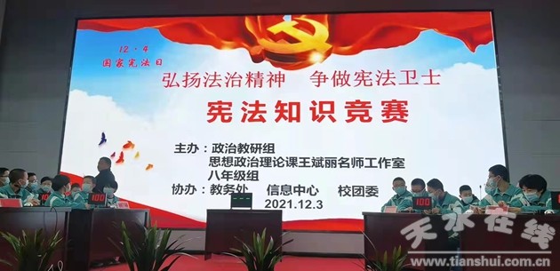 天水市教育系統(tǒng)以“憲法宣傳周”活動為契機,開展形式多樣的憲法宣傳學(xué)習(xí)活動,深入學(xué)習(xí)宣傳貫徹習(xí)近平法治思想,推動法治宣傳教育落地見效。