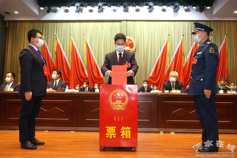 會議以無記名投票的方式,選舉了天水市第八屆人民代表大會常務委員會主任、副主任、秘書長、委員,選舉了市人民政府市長、副市長,選舉了天水市監(jiān)察委員會主任,選舉了市中級人民法院院長、市人民檢察院檢察長。經大會主席團第五次會議確認,張建杰當選為天水市第八屆人民代表大會常務委員會主任;索鴻賓、張棟梁、申君明、李煥珍、何曉斌、何吉洲當選為天水市第八屆人民代表大會常務委員會副主任;楊坤當選為天水市第八屆人民代表大會常務委員會秘書長;丁志杰、于劍鋒、馬兆讓、馬澤鵬、方西馬、石峰、田豐、劉兵、劉斐龍、牟建林、杜作明、李勇哲、李海巴、李強、李耀輝、楊永宏、楊曉妮、肖江、陳世平、陳維林、周俊才、趙繼文、侯少軍、秦福才、晏平、郭建生、章圣架、董強、釋一欽、靳志強、蔡全增、鮮志偉、魏勝奎當選為天水市第八屆人民代表大會常務委員會委員。王國先當選為天水市人民政府市長;賈義翔、董小平、汪小娟、郭慶祥、劉國軍、胡志勇當選為天水市人民政府副市長; 郝覺民當選天水市監(jiān)察委員會主任;張志利當選為天水市中級人民法院院長;楊耀明當選為天水市人民檢察院檢察長(須提請甘肅省人民代表大會常務委員會批準)。