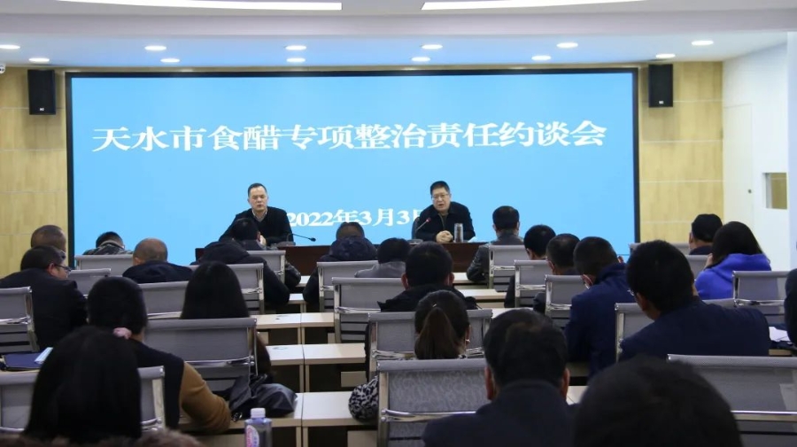 3月3日下午,省市場監(jiān)管局組織召開全省食醋生產(chǎn)企業(yè)責(zé)任約談視頻會,通報(bào)2021年度全省食醋生產(chǎn)企業(yè)監(jiān)督檢查及監(jiān)督抽檢發(fā)現(xiàn)的問題。會后,天水市市場監(jiān)督管理局組織召開全市食醋專項(xiàng)整治責(zé)任約談會議,就下一步開展食醋專項(xiàng)整治進(jìn)行了安排部署,市市場監(jiān)管局黨組成員王俊峰參加約談會并講話。全市23戶食醋生產(chǎn)企業(yè)和部分食醋加工小作坊負(fù)責(zé)人、以及縣區(qū)市場監(jiān)管人員共47人參加了會議。