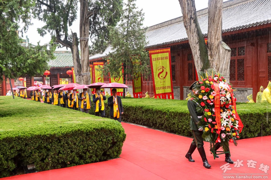 今天的伏羲廟,甘霖灑地、古柏參天、旗幡列張、鼓聲雄渾、鐘磬悠揚(yáng)。中華兒女聚首羲皇故里天水,懷虔敬之心、傳承之念,以太牢之禮、雅樂(lè)之儀,致祭于中華人文始祖太昊伏羲氏。