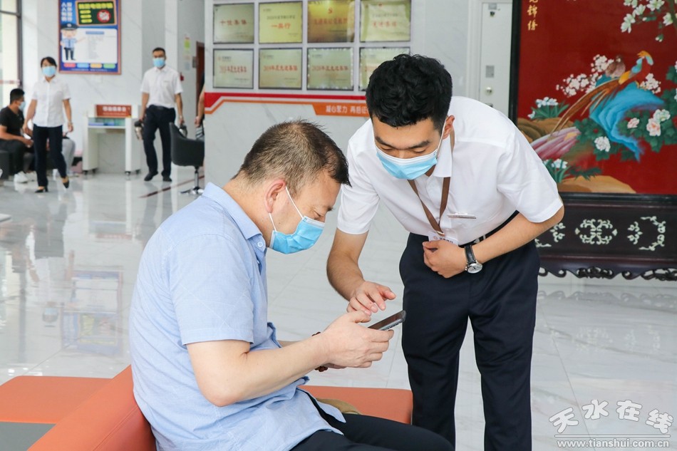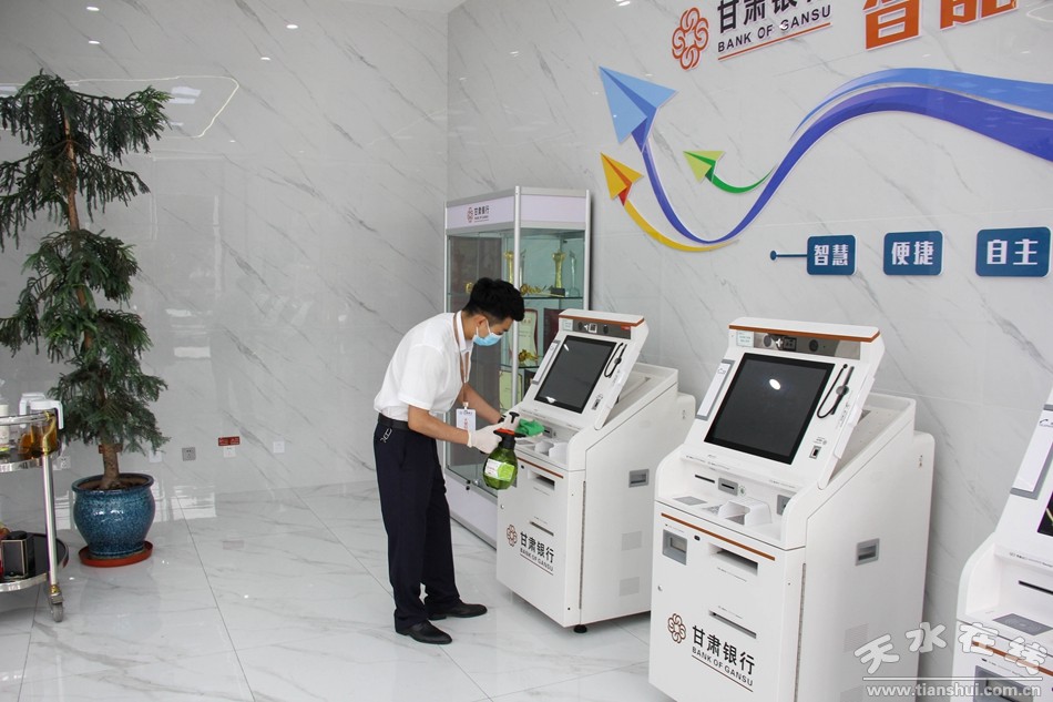 把好廳堂關(guān),守好安全門。甘肅銀行天水分行營業(yè)室嚴格落實省市區(qū)疫情防控要求,開業(yè)前對營業(yè)場所和辦公機具進行全面消毒處理,并適當加大對客戶高頻度接觸設(shè)備的消毒次數(shù),對所有進入營業(yè)場所的客戶要求配戴口罩、測量體溫、登記信息、核查“兩碼”,引導(dǎo)客戶有序進入營業(yè)網(wǎng)點辦理業(yè)務(wù),并保持一米以上距離,有效減少人員聚集,為客戶提供了安全舒心的營業(yè)環(huán)境。