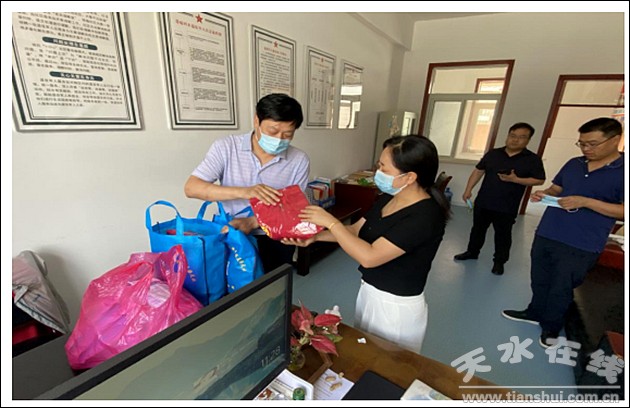 7月21日,天水市文明辦黨支部書記張世鈞帶領支委成員走進黨建共建單位盛源社區(qū),慰問戰(zhàn)斗在疫情防控一線的社區(qū)工作者和廣大志愿者,并贈送了防疫口罩、志愿服裝等物資。