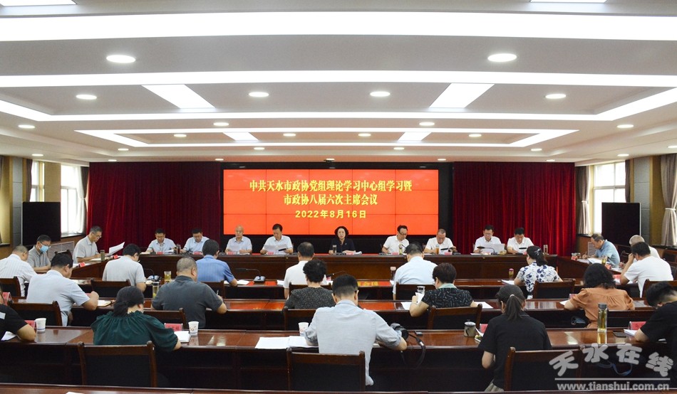 8月16日,天水市政協(xié)黨組書記、主席王燕主持召開市政協(xié)黨組理論學(xué)習(xí)中心組學(xué)習(xí)暨市政協(xié)八屆六次主席會(huì)議。市政協(xié)黨組副書記、副主席郭明興,市政協(xié)黨組成員、副主席馬勤學(xué)、馬筱寧,市政協(xié)副主席董仲奇、何寶平、楊鐵森、羅增芳、范多智出席會(huì)議。
