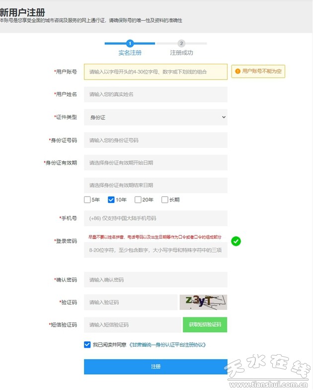 用戶依次真實有效地填寫相關(guān)信息