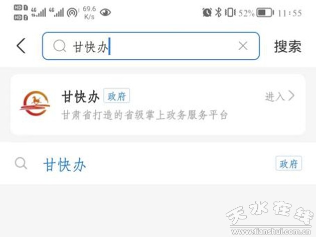 微信搜索“甘快辦”點擊即可進入甘快辦微信小程序首頁。