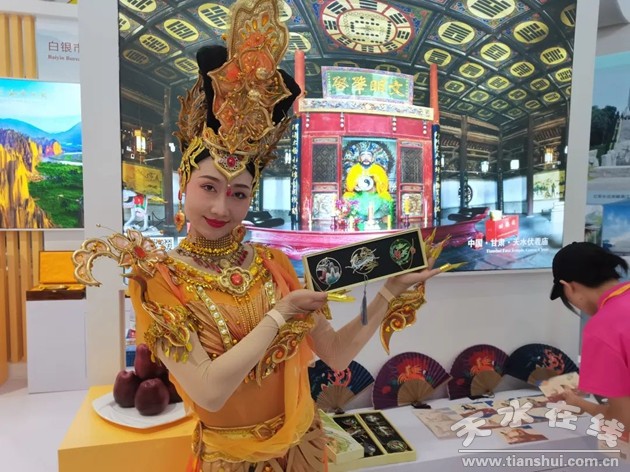 天水文旅投公司攜帶文創(chuàng)產(chǎn)品亮相此次東盟博覽會(huì)旅游展,整個(gè)展覽展會(huì)突出特色化、精品化和創(chuàng)意性、融合性,展銷商品種類豐富,既有非物質(zhì)文化遺產(chǎn),又有最新文化創(chuàng)意成果;既有精美雅致的傳統(tǒng)工藝品,又有經(jīng)濟(jì)實(shí)惠的花牛蘋果,充分體現(xiàn)了天水深邃的文化內(nèi)涵。