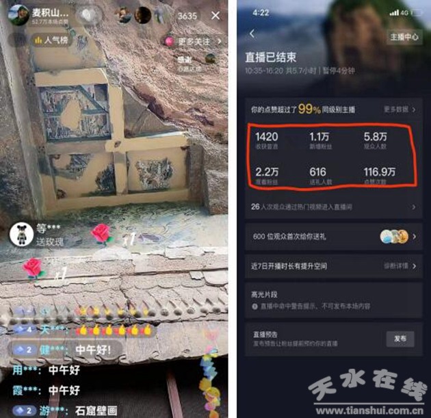 為營造濃厚的節(jié)慶旅游氛圍,線上,前期拍攝《美麗中國》、《麥積山大景區(qū)旅游攻略》、喜迎二十大《不忘初心》MV,提前預(yù)熱,制造話題,微信視頻號增粉2000,抖音、微信視頻號瀏覽量超過10萬;麥積山大景區(qū)積極主動參加“甘肅文旅100個美好目的地”主題網(wǎng)絡(luò)宣傳活動,充分利用5大景區(qū)各自的資源特點(diǎn),深挖歷史文化故事,在抖音平臺創(chuàng)作發(fā)布短視頻作品,全面展示麥積山大景區(qū)悠久的人文歷史風(fēng)貌和雄奇險秀的自然風(fēng)光。10月2日上午,麥積山大景區(qū)官方抖音賬號開展線上直播活動,邀請麥積山石窟專業(yè)人員從麥積山石窟的建造時間、名字由來、朝代更迭等方面,讓游客足不出戶“云游”麥積山石窟,在長達(dá)6小時的直播中,參與人數(shù)64456人次,參與評論35553人次,點(diǎn)贊116.9萬人次+,抖音賬號漲粉11957人,甘肅直播熱榜第9位,打造出了麥積山大景區(qū)宣傳新格局,達(dá)到了良好的宣傳效果,開拓宣傳新思路,進(jìn)一步提高麥積山大景區(qū)的知名度與美譽(yù)度。