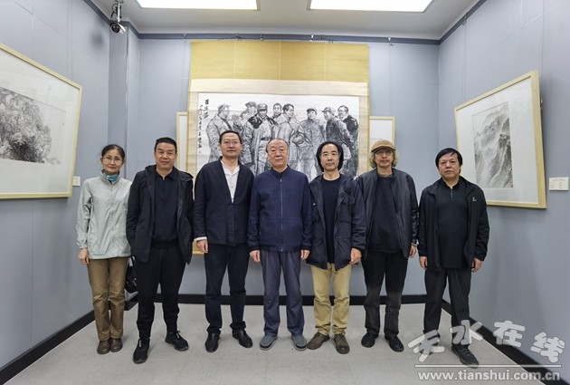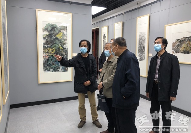 座談結(jié)束后,在天水美術(shù)館館長李靖的陪同下參觀了“鄉(xiāng)村振興 文化賦能”描繪美麗鄉(xiāng)村——天水寫生作品展,并一同鑒賞了張玉壁先生捐贈給天水美術(shù)館的一幅八尺人物國畫《在延安》。